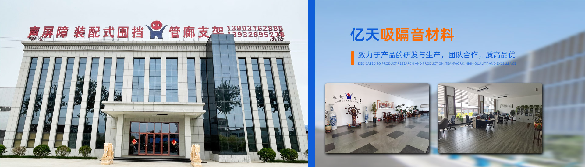 廊坊億天吸隔音材料有限公司于1997年建廠,公司位于河北省廊坊市文安縣興隆宮鎮(zhèn)朱河村工業(yè)區(qū),地處京、津、冀金三角地帶,注冊資金8005萬元。公司一直致力于環(huán)保產品的研發(fā)與生產,主要涉足于公路鐵路噪聲處理、廠房鋼結構、防塵抑塵治理、環(huán)境美化四大領域。主營產品有高速鐵路用···